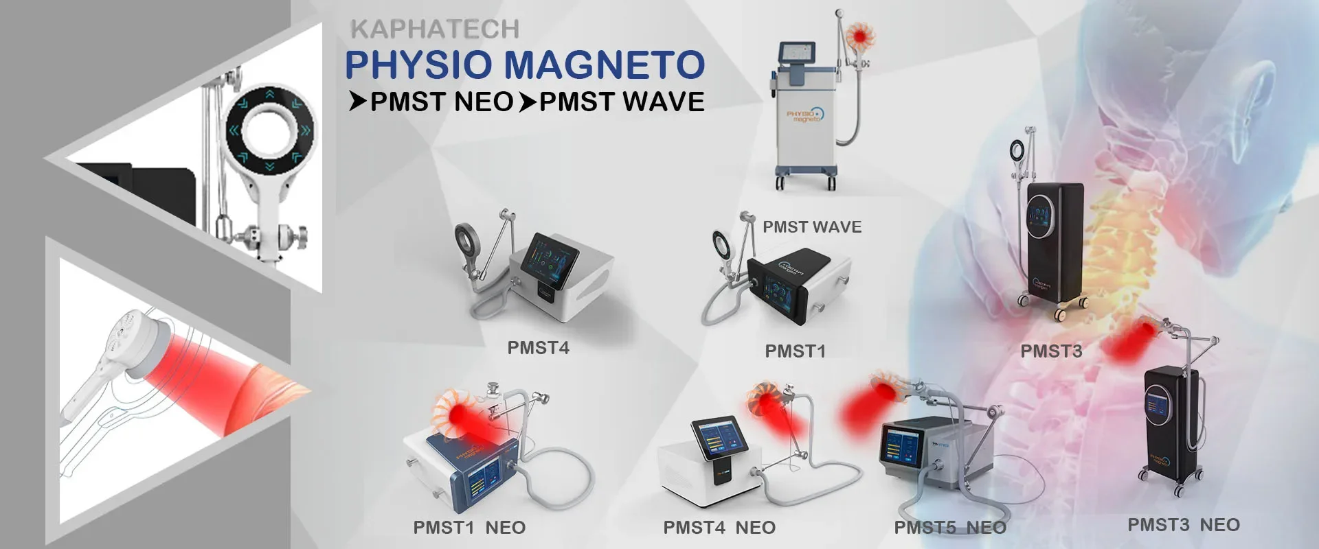 The PMST NEO opens up new possibilities in regeneration and rehabilitation. The areas of application include diseases of the musculoskeletal system, joints pain, sports injuries , muscle strain, fracture healing etc PMST differs from general forms of magnetic field therapy or PEMF due to the high oscillation frequency, This property enables a high penetration depth and a large range of indications.